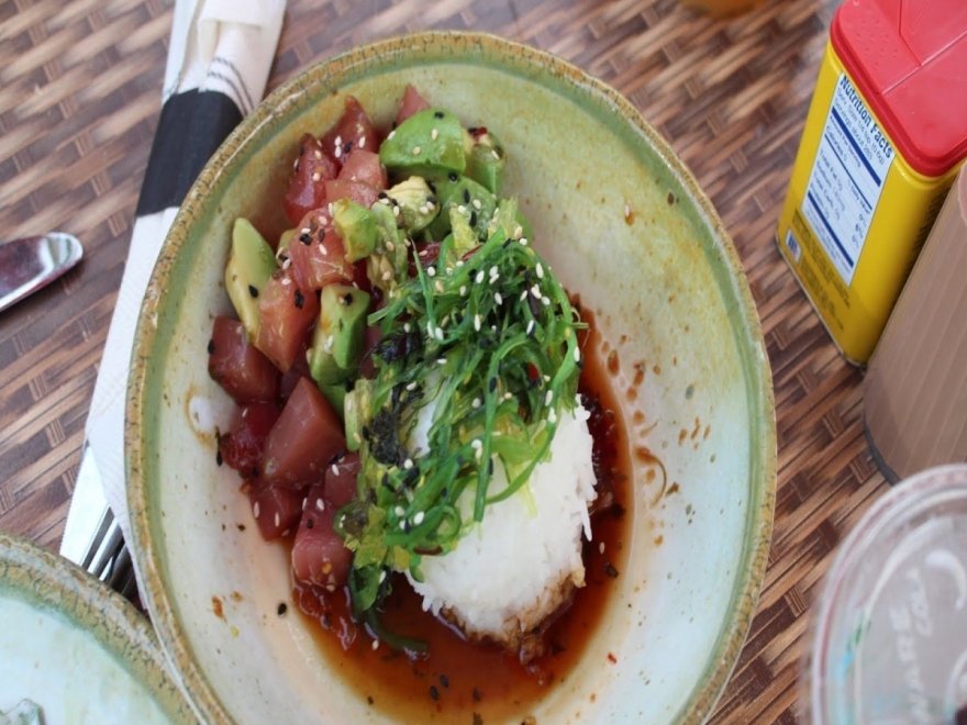 We started with the blue crab queso and the famous jalapeño corn & crab bisque — hands down the best soup we've ever had. In fact, it was so good we returned the next day just for another bowl. We also ordered two of the popular furikake sticky rice bowls with shrimp and salmon, both bursting with flavor. To top it off, we enjoyed a couple of the mudslides, which were rich, smooth, and perfectly indulgent.